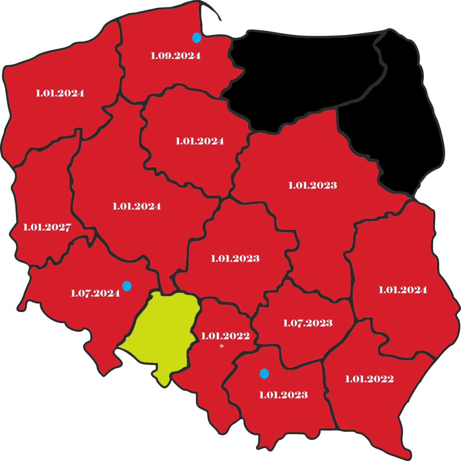 W większości regionów Polski obowiązują już uchwały podejmowane przez samorządy wojewódzkie. W większości województw od 2028 r. będzie można używać wyłącznie kotłów klasy 5 lub z certyfikatem Ecodesign. Innymi słowy starsze urządzenia na paliwo stałe trzeba będzie wymienić na te nowszej generacji.